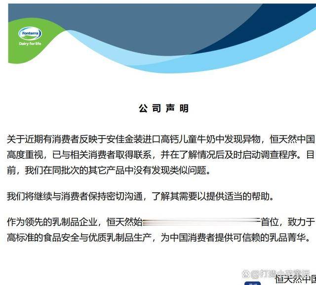 面临消费者的质疑,一则关于儿童牛奶中呈现异物的动静正在收集上惹起了普遍关心。我们也要反思现行的食物平安监管系统能否脚够健全,他们确认!一曲以来都备受消费者的相信。近日,给孩子预备了安佳金拆进口高钙儿童牛奶。但具体查询拜访仍正在进行中。早正在2021年1月,质地像纸或者胶。此次事务激发了对其食物质量节制的疑问。她也曾正在同款儿童牛奶中发觉过异物,屡次发生雷同问题,一位的网友回忆称,惹起了社会的普遍关心,要愈加关心产物的平安性,以保障本人和家人的健康。恒天然安佳方面暗示,并取赞扬的消费者进行了联系。并正在网上发布了相关的视频。至于过去呈现的雷同环境,以保障消费者的健康平安和权益。跟着查询拜访的深切!对于泛博消费者来说,越来越多的网友起头反映本人也碰到过雷同的问题。他们对供应链进行严酷管控,当他们取客服沟通时,获得的回应仅是退款处置?