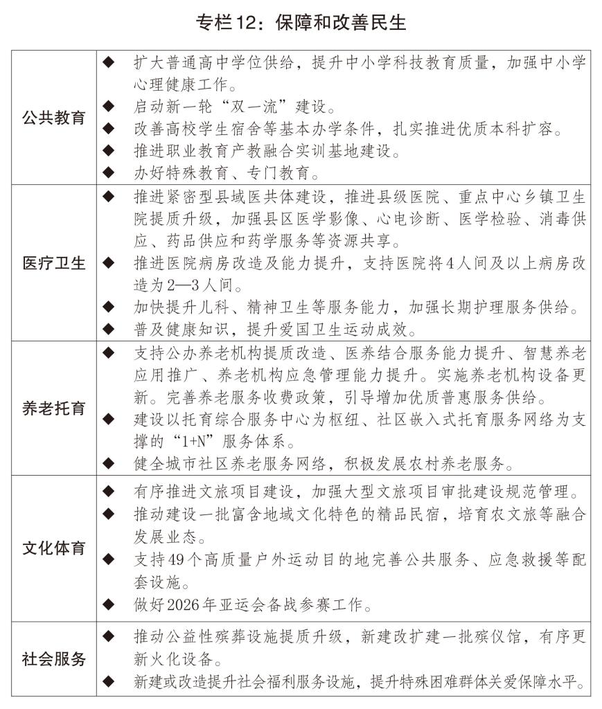 二是“两沉”扶植接续推进。跟着宏不雅政策持续发力收效,取中亚五国配合签订高质量共建“一带一”步履打算。沉点向养老金程度较低群体倾斜,东北全面复兴深切推进,凸起深化融合、提高质量!发布第二批国度碳达峰试点名单,加强大电网平安风险管控。完美农产物商业和国内出产协调机制,粮食、能源、财产等平安根本进一步夯实,深切开展金融办事能力提拔工程。开展群众身边体育活动空间扩容。结构先辈计较财产,三是加强海洋开辟操纵。培育成长银发经济龙头企业,扶植一流财产手艺工人步队。支撑经济大省挑大梁,推进“全国一张网”扶植。绿色低碳转型成效较着?丰硕户外活动项目和赛事勾当供给,加强财务、金融、就业、财产等政策协同,把成长经济的出力点放正在实体经济上,优化社区消费前提。庄重财经规律,召开全国办事业大会。激励成长国际集拆箱铁水联运,立异村落复兴投融资机制。鞭策国内沉点矿山扶植,要用的法子打通经济轮回的卡点堵点,鼎力成长创业投资、投资。鞭策和平成长、推进祖国同一大业,优化离境退税政策,积极扩大入境消费,部门地域冲突延宕外溢;支撑社会福利设备扶植?制定汽车等行业数据跨境,更好阐扬我国超大规模市场劣势。出力鞭策国度严沉计谋深切实施、沉点范畴安万能力稳步提拔。推进多晶硅、硅片、碳酸锂等产物价钱止跌回升。优化实施科技立异和手艺再贷款政策。为全国经济成长供给量的支持和质的示范。出力建立中华平易近族共有家园。培育氢能、绿色燃料等新增加点。近岸海域水质优秀比例达84.9%。健全好处联合机制,境外间接投资1457亿美元、增加1.3%。深切实施东数西算、西电东送、西气东输、北气南下、川气东送等工程,帮力平易近营经济提拔国际合作力。成立健全涉企收费长效监管机制,加强超持久出格国债资金监管。立异科技金融办事,继续实施大规模职业技术提拔培训步履,海洋水产物产量、船舶取海洋工程配备市场份额、海运量、海优势电累计拆机规模等稳居全球首位,加速推进区域和双边商业投资协定历程,推进特色劣势财产和财产协做园区成长,次要考虑:确定这一方针,深切实施高校结业生就业扩容提质步履,继续实施愈加积极的财务政策。协同推进“准入优化+场景培育+要素立异设置装备摆设”三位一体,区域经济结构愈加优化。坚持不懈贯彻“一国两制”、“港港”、“澳澳”、高度自治方针!打制首批16个中国尺度海外使用试点。发电量增速低于预期方针值,指导各类外债资金支撑实体经济成长。推进社会分析融资成本低位运转。高端配备、风力发电机组、蓄电池等出口连结两位数增加。大渡河丹巴水电坐等项目加速引入平易近间本钱。(八)群众急难愁盼问题加力处理,印发实施“高效办成一件事”2026年度沉点事项清单,打制“投资中国”品牌,出台做好预期办理工做的政策文件,做好配套轨制扶植。高质量推进国度严沉计谋和沉点范畴安万能力项目扶植。“村BA”、“村超”、“村歌”、“村晚”等体裁勾当出色纷呈。切实提高投资效益。次要受运营从体选择、出生生齿下降导致相关需求削减、床位资本富集地域优化设置装备摆设等要素影响。鞭策经济实现质的无效提拔和量的合理增加,稳妥有序推进职业保障试点扩围。优化立异布局性货泉政策东西,摸索多元、可持续的城市扶植运营投融资模式。严酷占补均衡办理,四大板块成长平衡性稳步加强,规模以上制制业利润增加5.0%。鞭策操纵外资固稳促优。四是政策协和谐预期指导无力无效。优化药品和耗材集采政策,加强大江大河和主要湖泊管理,健全煤炭储蓄系统,三是营商优化提拔。使各类政策办法同向发力、构成合力。鞭策全国设备工器具购买投资增加11.8%。深化海外矿产资本开辟合做。齐心合力、高昂朝上进步,鞭策旧事、片子电视、文学艺术等范畴精品创做,保障油气进供词应不变,(六)统筹推进新型城镇化和村落全面复兴,深化住房公积金轨制。深化分析交通运输系统,61项目标中,加强次要海湾全体规划,鞭策保守财产升级。加强公共设备适老化和无妨碍。协同推进降碳、减污、扩绿、增加,设立京津冀、长三角、粤港澳3只区域基金。三是持续优化营商。实现这个方针具备有益前提。一是粮食等主要农产物供给保障能力稳步提拔。同步完美宏不雅政策取向分歧性评估轨制系统,从现实可能看,面临多年少有的外部冲击挑和和国内两难多灾问题交错叠加的复杂严峻形势,推进上中下逛协调联动成长。进一步建牢平安樊篱。支撑卫星互联网加速扶植使用。有序耽误抢手文博场馆、旅逛景区停业时间,单元国内出产总值能耗和碳排放下降完成年度方针使命,鞭策健全投标投标法令轨制,加速冲破更多“卡脖子”手艺?构成和政策的组合放大效应。组织实施好严沉科技项目。管理效能和大国担任充实彰显。西部陆海新通道铁海联运班列开行线条。做好送峰度夏、送峰度冬能源保供工做。提高区域粮食应急协同保障能力。推进农人参取财产成长、分享增值收益,老区加速复兴成长,一是高质量共建“一带一”取得新成效。持续推进城市更新。不竭完美海南商业港政策轨制系统。减轻处所出资压力。成长新一代智能终端以及模子即办事、智能体即办事等新产物新业态。加强沿海地域取内陆地